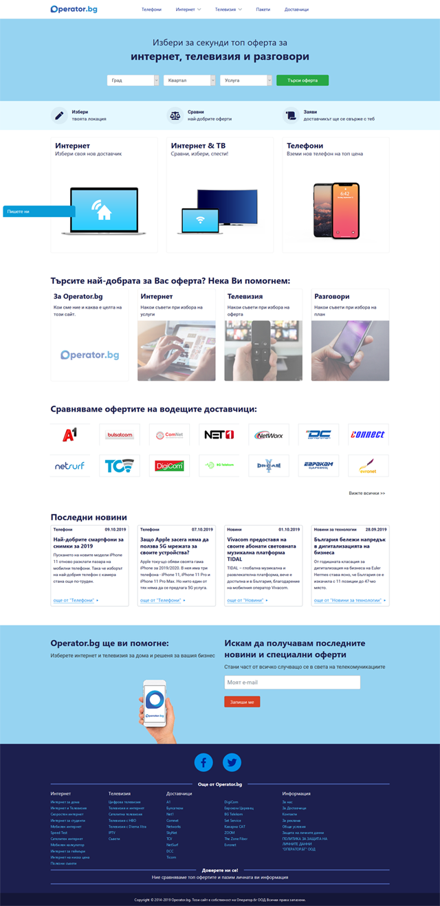 Един много полезен интернет сайт. Той събира и класифицира информация от оферти за доставка на интернет и телевизия. Потребителят има възможност, според местоположението си, да сравни и да избере оптималната за своите нужди.